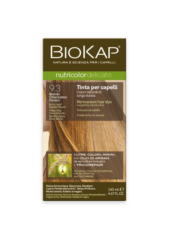 Formulación que no contiene parafenilendiaminas. La exclusiva fórmula con ingredientes vegetales y alta tolerabilidad de la piel, nutre y repara el cabello mientras lo tiñe y cubre perfectamente las canas. Con TRICOREPAIR, un complejo con proteínas del arroz, derivados del sauce y ácidos frutales lipofílicos. Enriquecido con aceite de argán de origen orgánico, nutre el cabello y hace que sea más suave y brillante.