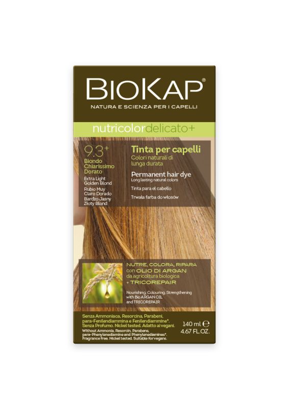 Formulación que no contiene parafenilendiaminas. La exclusiva fórmula con ingredientes vegetales y alta tolerabilidad de la piel, nutre y repara el cabello mientras lo tiñe y cubre perfectamente las canas. Con TRICOREPAIR, un complejo con proteínas del arroz, derivados del sauce y ácidos frutales lipofílicos. Enriquecido con aceite de argán de origen orgánico, nutre el cabello y hace que sea más suave y brillante.